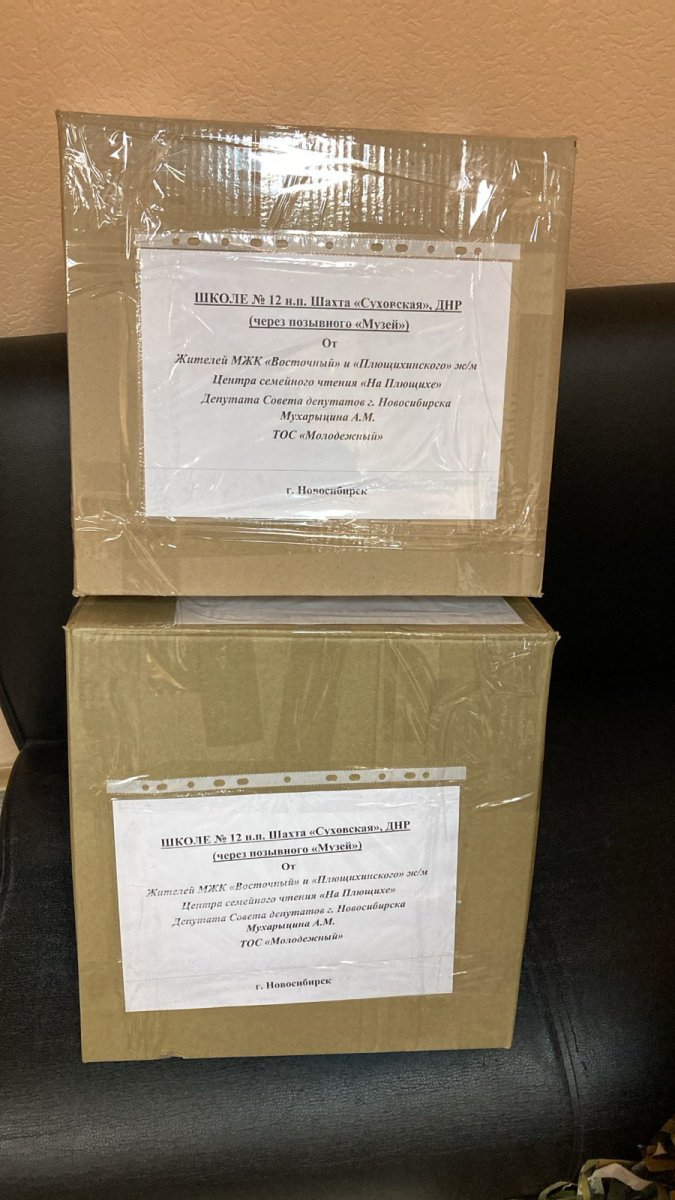 Для школы № 12 н. п. Шахта «Суховская» ДНР были переданы школьные принадлежности, игры, книги, краски, альбомы и др.