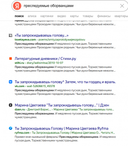 Меня этот вопрос смутил, так как подобного стихотворения я у неё не помнил… И вот что оказалось: я знаю это стихотворение… но не вот эту строчку: «Преследуемы оборванцами…»