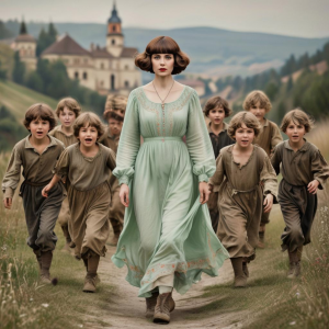 На первом фото, в самом верху, можно увидеть, как нейросеть иллюстрирует ситуацию: «Марина Цветаева, которую преследуют оборванцы».