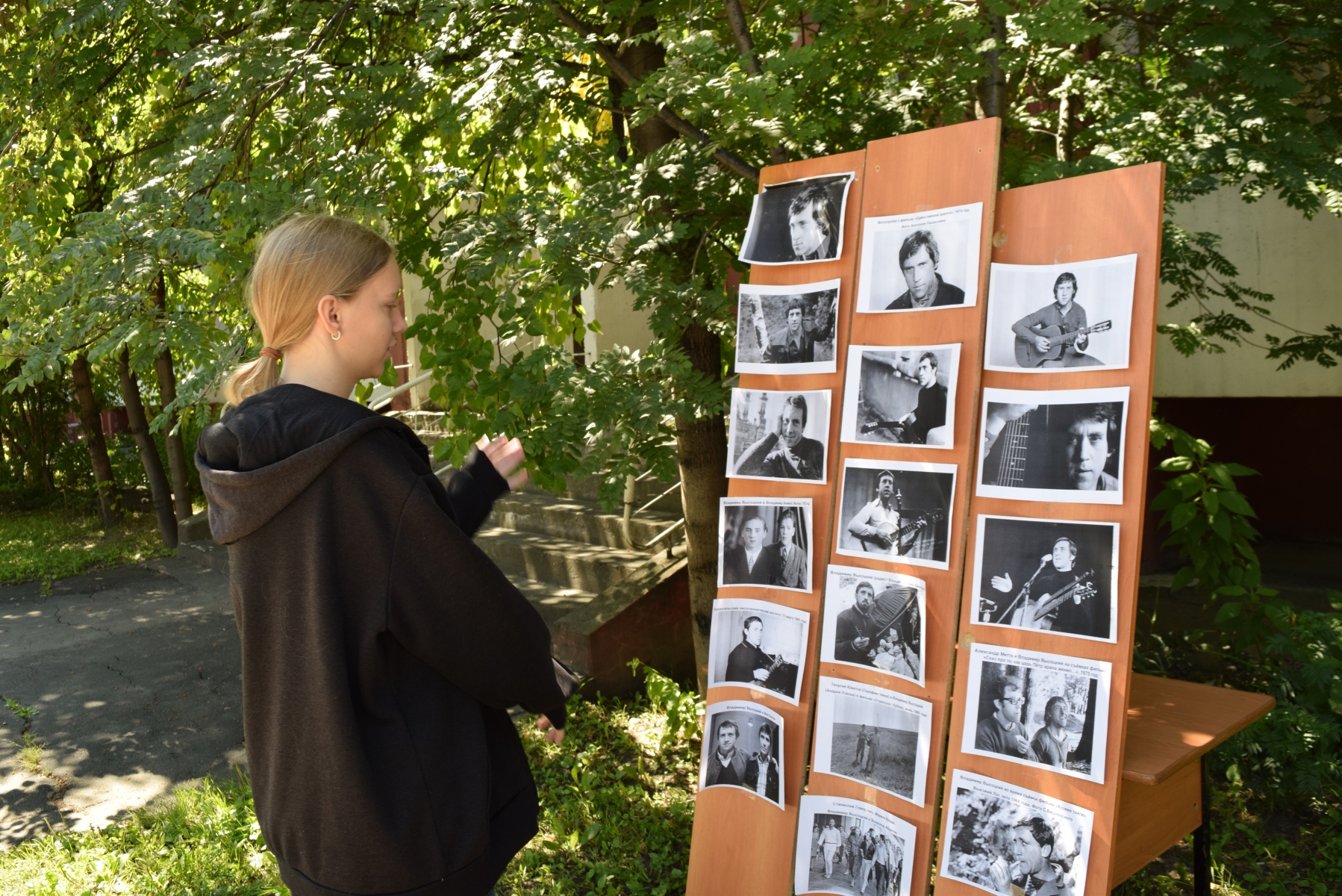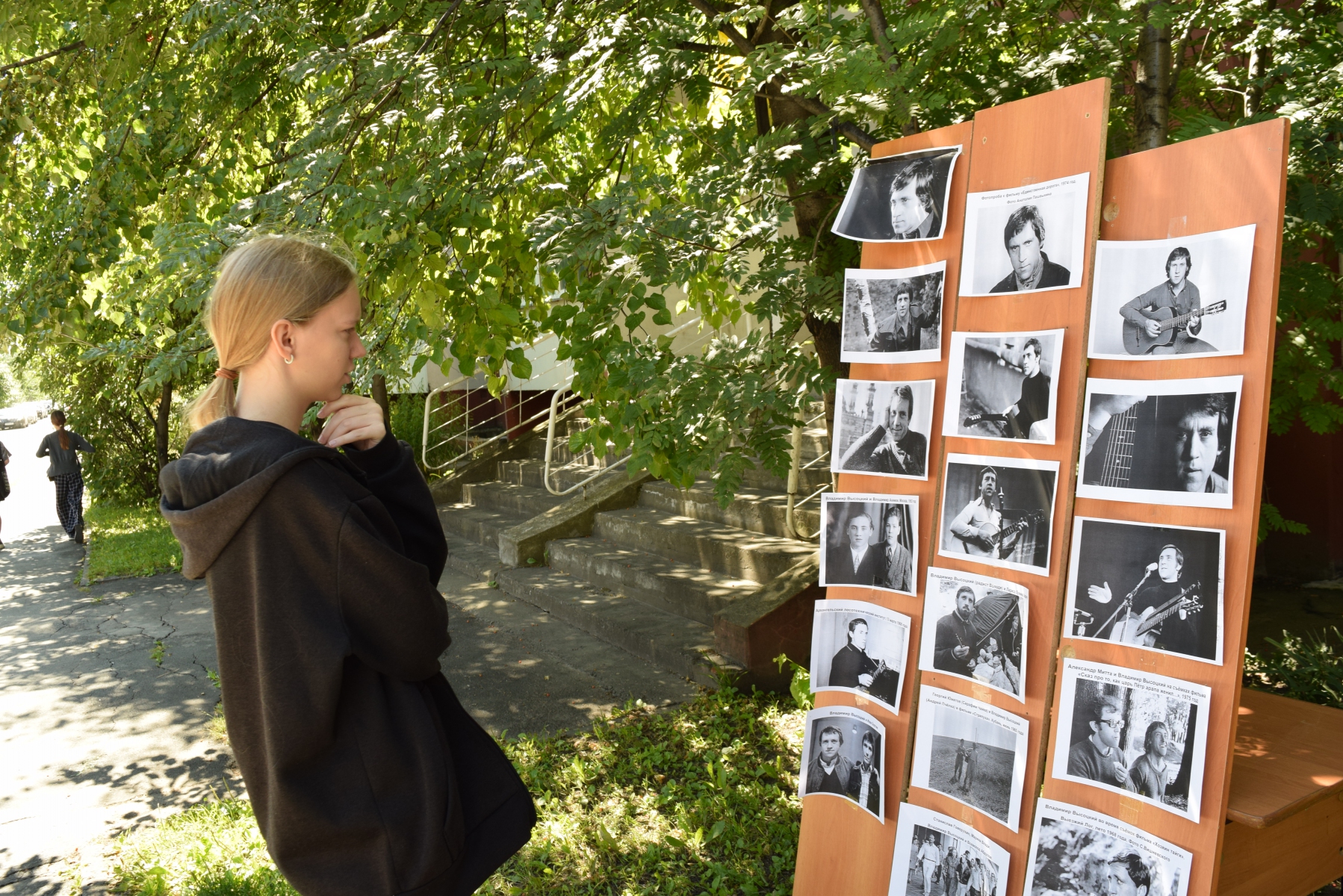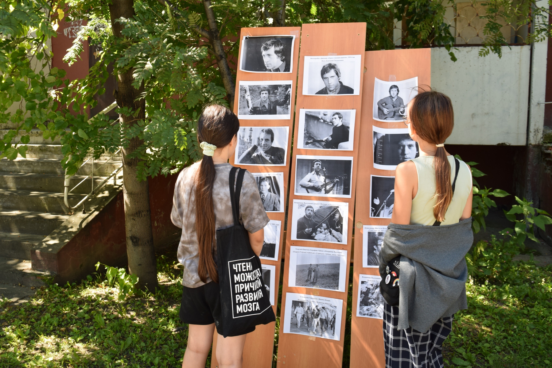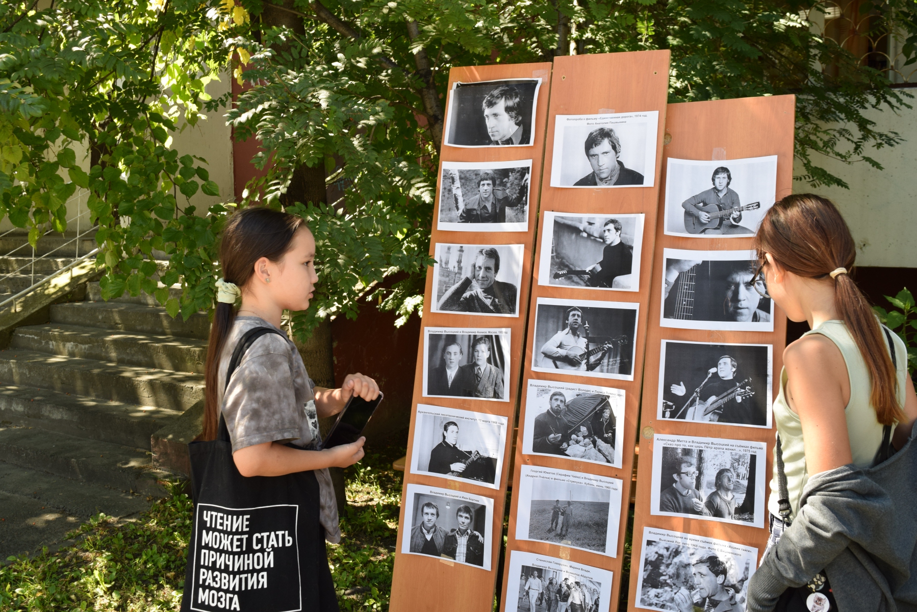 Участники мероприятия с удовольствием рассматривали фотографии Владимира Высоцкого — на съемках, пробах, с друзьями, в путешествиях, размещенные на стенде.