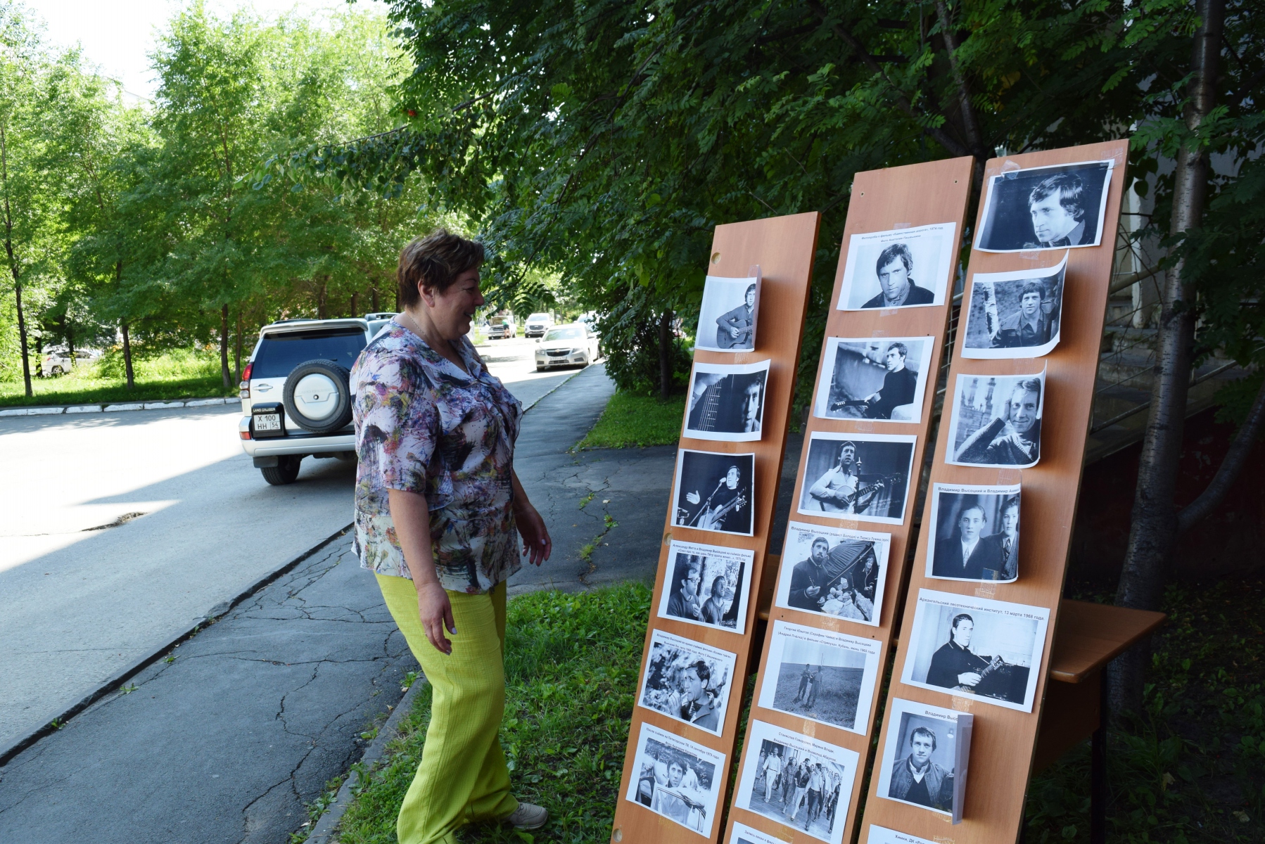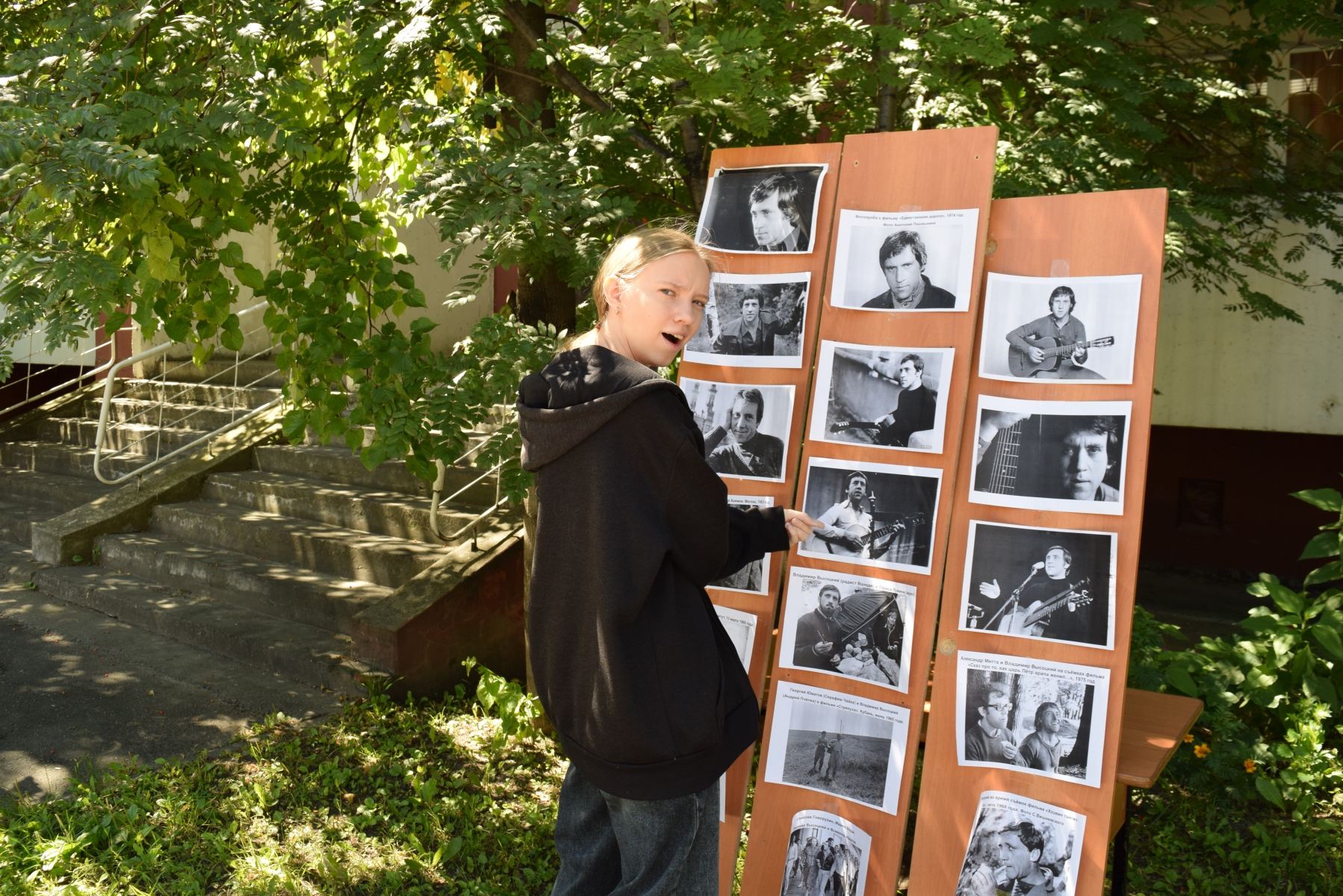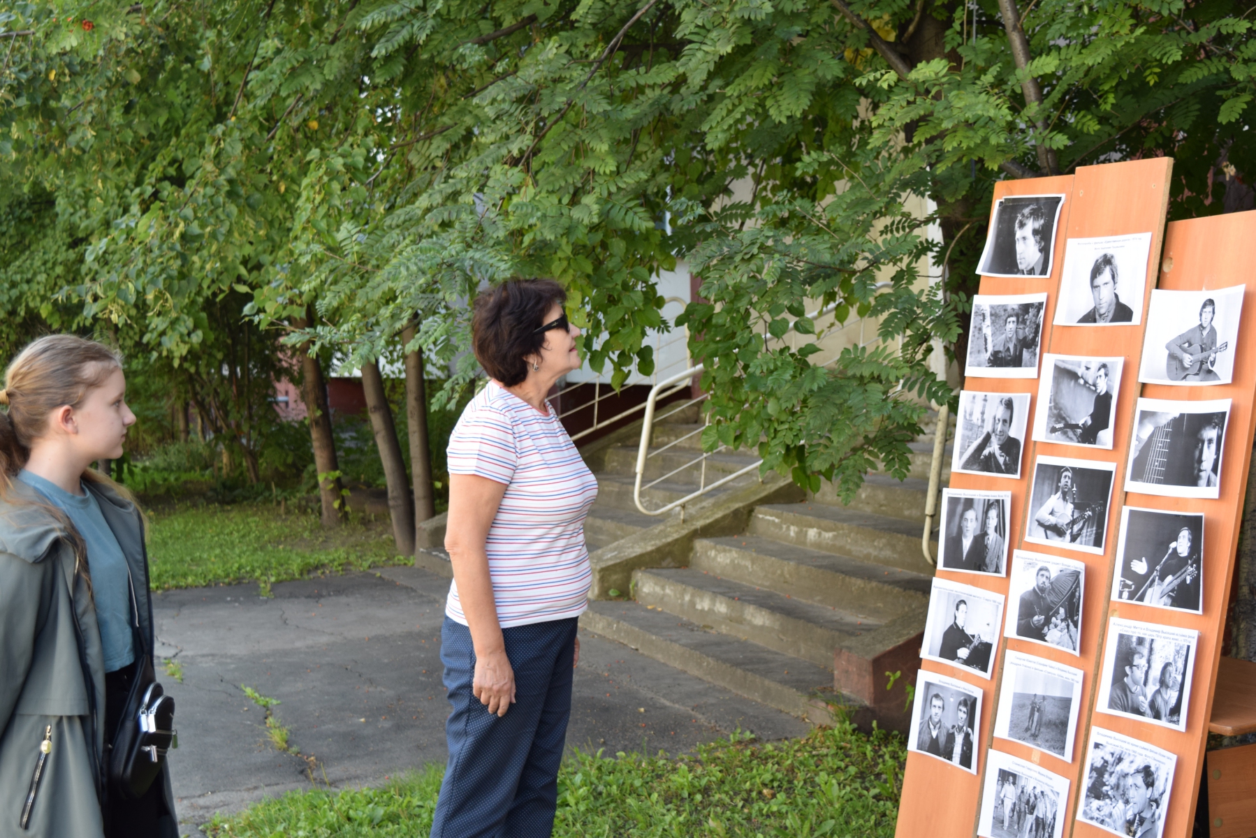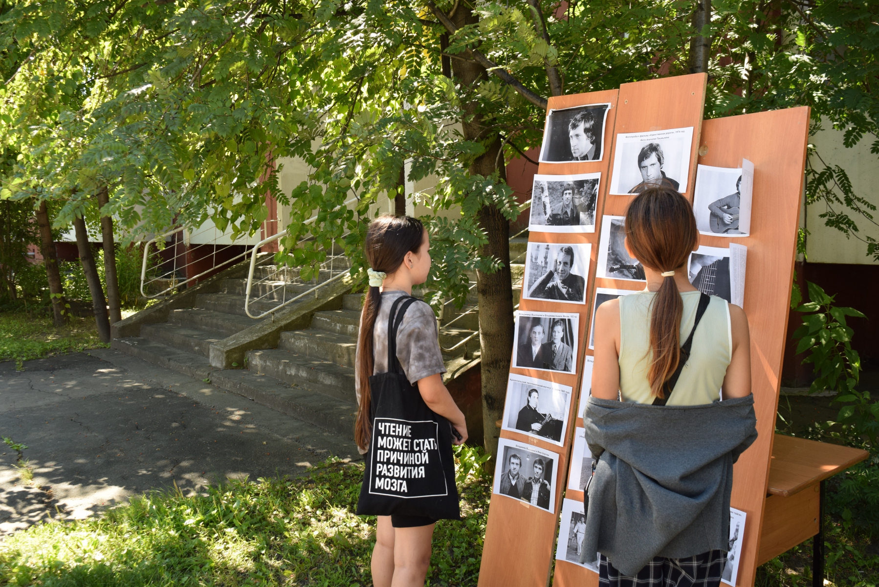 Участники мероприятия с удовольствием рассматривали фотографии Владимира Высоцкого — на съемках, пробах, с друзьями, в путешествиях, размещенные на стенде.