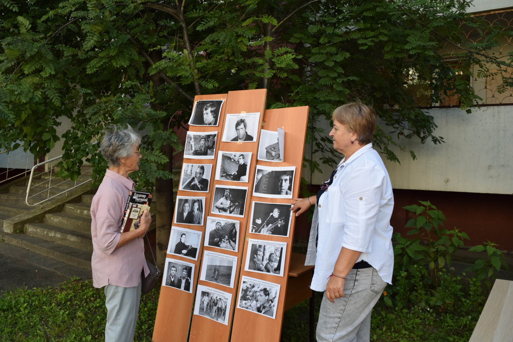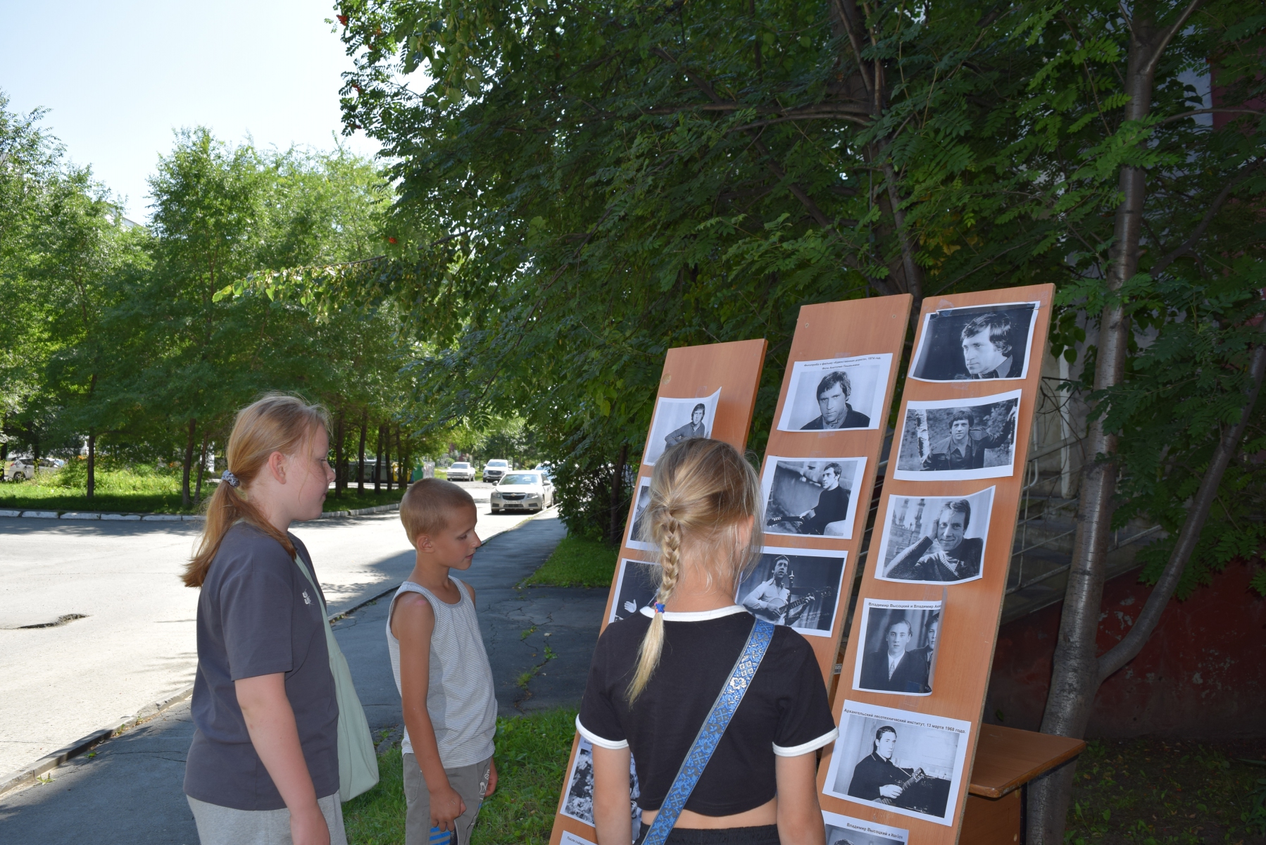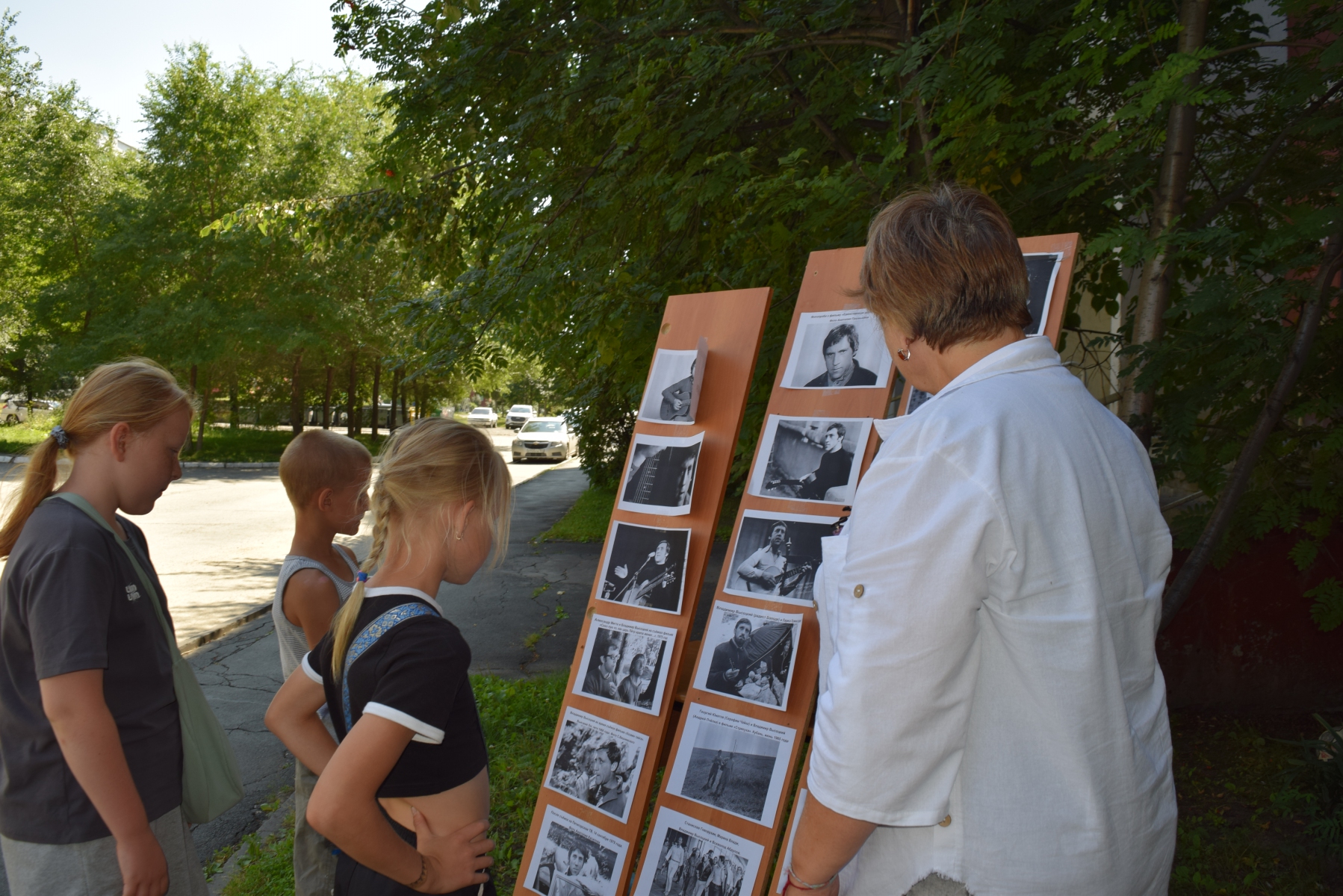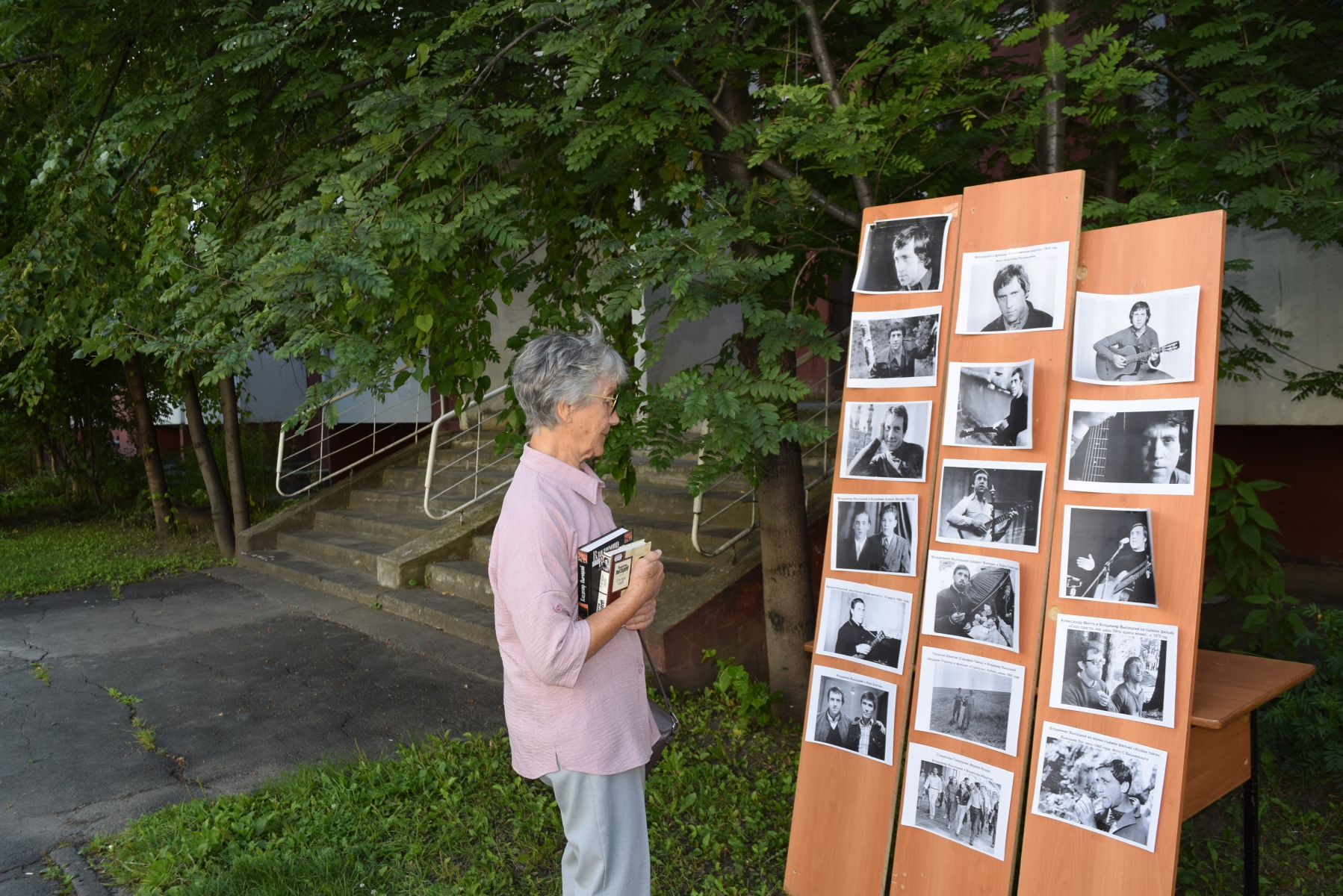 Участники мероприятия с удовольствием рассматривали фотографии Владимира Высоцкого — на съемках, пробах, с друзьями, в путешествиях, размещенные на стенде.