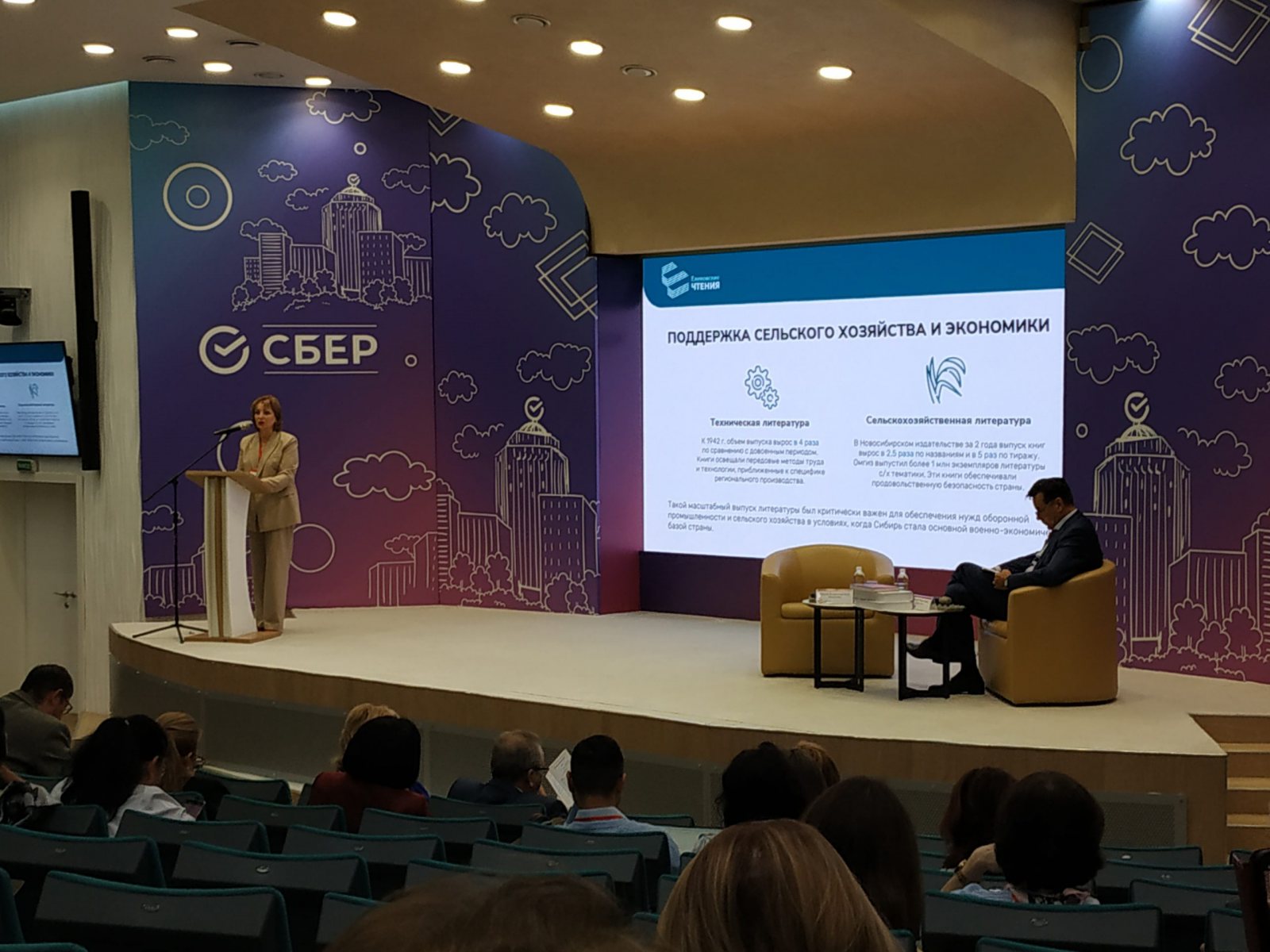 С докладом «Сибирский арсенал Победы: книжное дело в годы Великой Отечественной войны» выступила доктор исторических наук, директор ГПНТБ СО РАН Ирина Владимировна Лизунова.