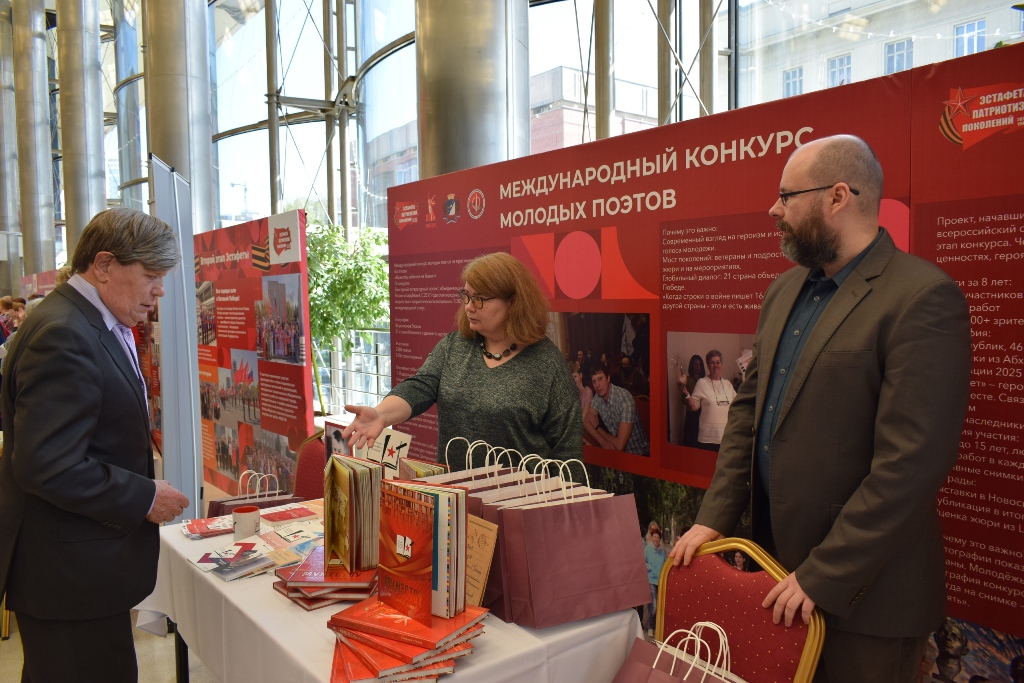 Накануне Дня Победы в Государственном концертном зале им. А. М. Каца прошло торжественное мероприятие «Эстафеты патриотизма поколений». Наша библиотека представила там Международный конкурс молодых поэтов на приз имени Бориса Богаткова и новый сборник стихотворений «Мужеству забвенья не бывает».