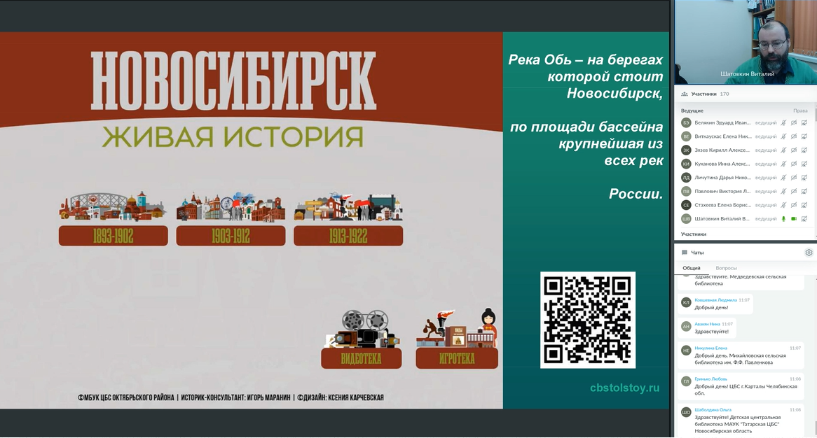 Но на этот раз нам выпала почетная миссия – открыть проходивший 9 декабря на базе Архангельской областной научной библиотеки им. Н. А. Добролюбова общероссийский вебинар «По секрету всему свету: интересный и полезный опыт библиотек». Мероприятие собрало более 200 слушателей со всей страны. Опыт ЦБС Октябрьского района представляли заместитель директора библиотечной системы Виталий Витальевич Шатовкин и специалист отдела маркетинга и связи с общественностью Елена Игоревна Иноземцева. Доклад наших коллег «Интерактивное краеведение в библиотеке: новации и возможности» вызвал огромный интерес со стороны общероссийского библиотечного сообщества. Нам очень приятно, что наш опыт в библиотечной краеведческой деятельности остается не только уникальным и передовым, но и пользуется высокими оценками коллег со всех уголков России.