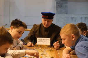 Наши локации были не менее разнообразные: можно было посетить реальное училище или Тифозный барак, изучить статуэтки и модели печатных станков Гутенберга и Леонардо да Винчи, посвящённые истории книгопечатания.