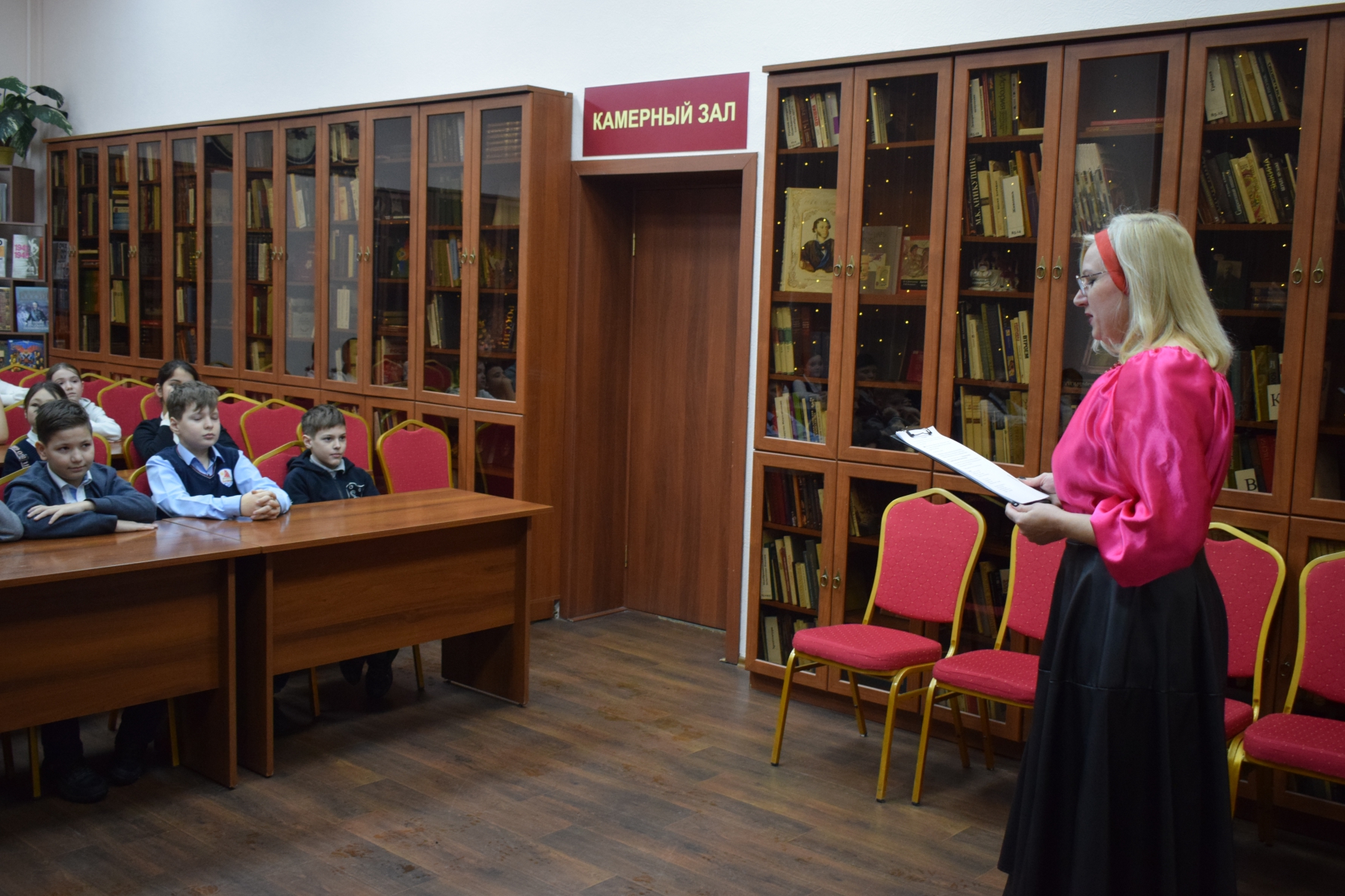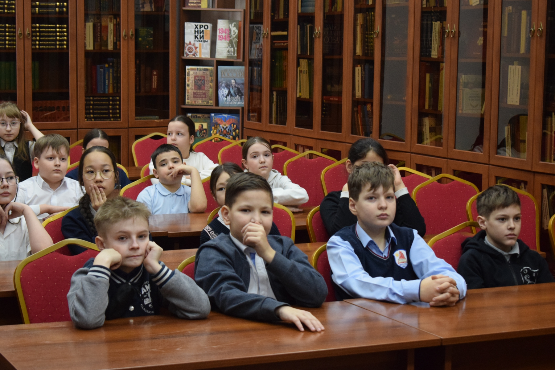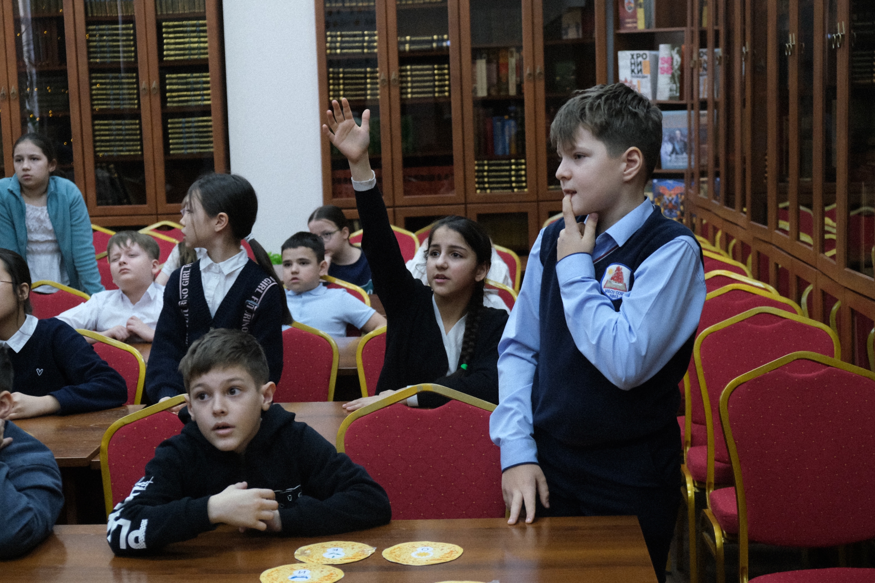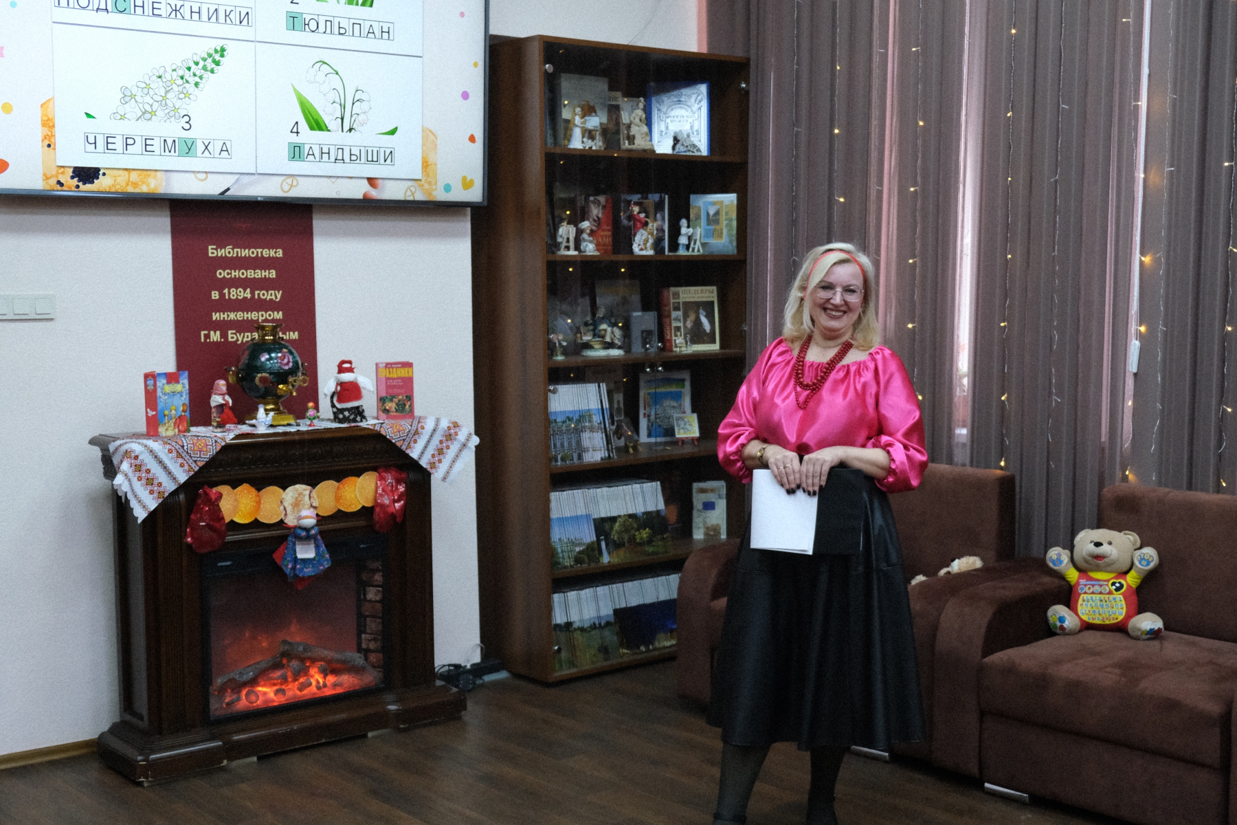 На мероприятии в библиотеке им Л. Н. Толстого дети из СОШ № 52 не просто играли, они отправились в путешествие по масленичной неделе, следуя за подсказками Весны. Каждый этап – это новая станция и новый блинчик-символ.