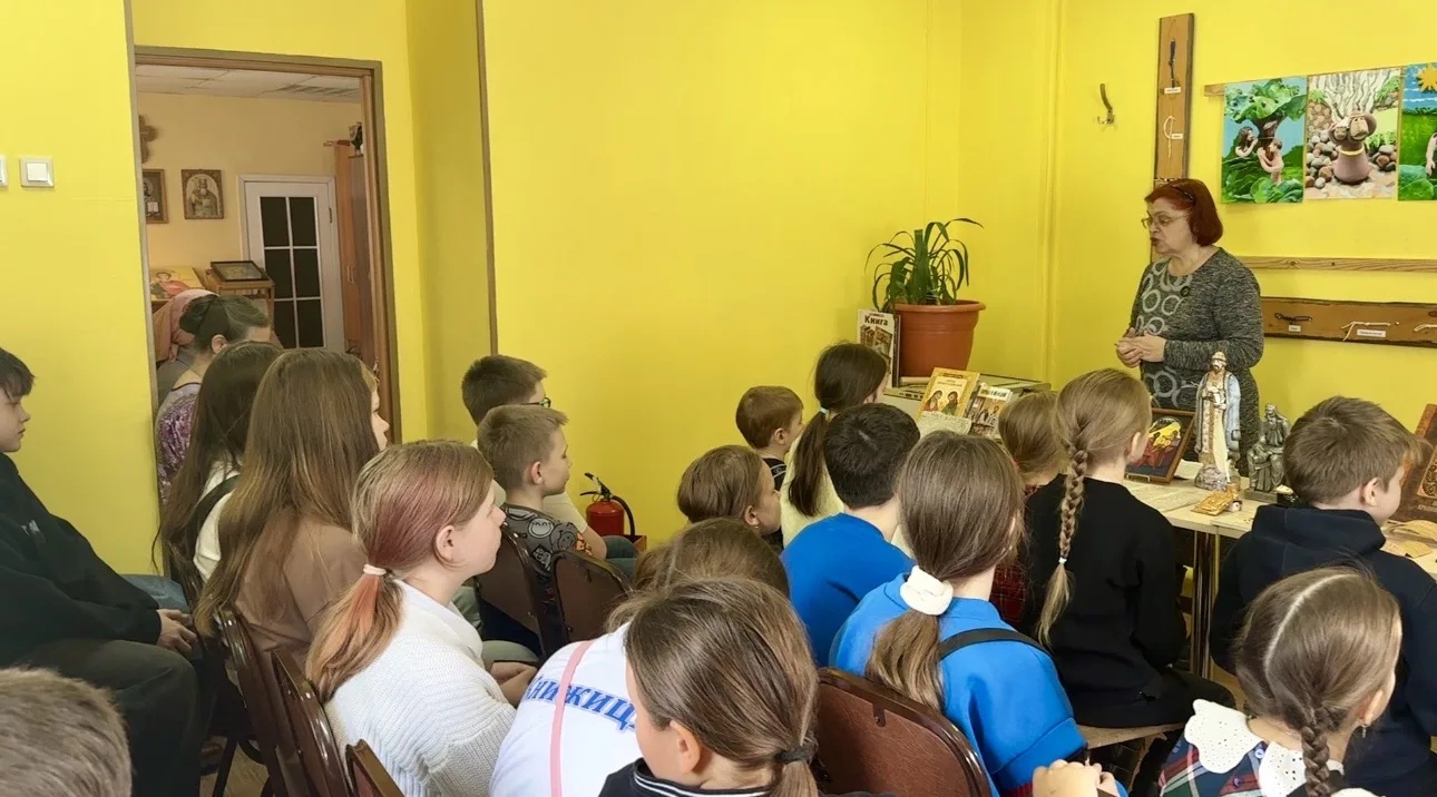 22 марта в Воскресной школе храма во имя святого мученика Вонифатия состоялась необычная встреча. В рамках детского литературного клуба юные читатели и их родители отправились в путешествие, которое длилось больше тысячи лет, – в историю православной книги. Проводником выступила библиограф библиотек Октябрьского района Ирина Фомичева, для которой славянская письменность давно стала не просто областью знаний, но делом души.