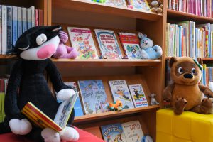 А рядом с выставкой на столике дети могут попробовать себя в роли иллюстраторов, нарисовав любимого героя или собрать пазлы по стихам Барто.