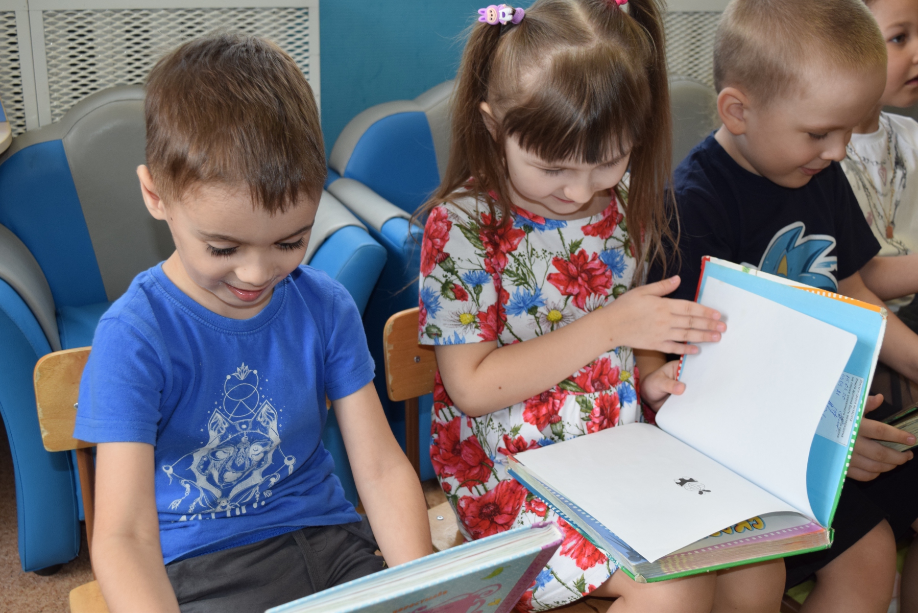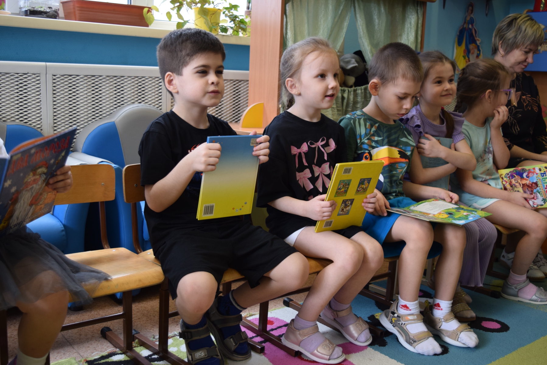 А в конце утренника ребятишки познакомились с книгами из фонда библиотеки.