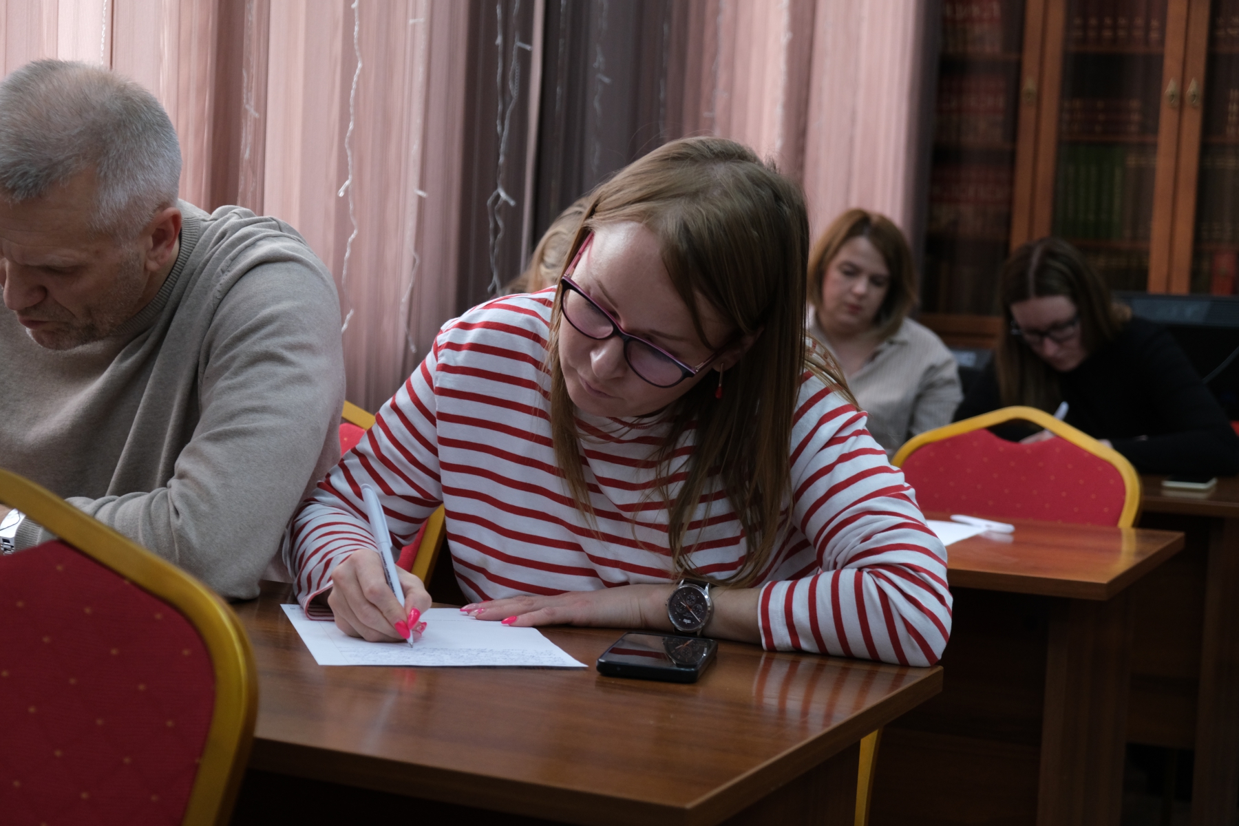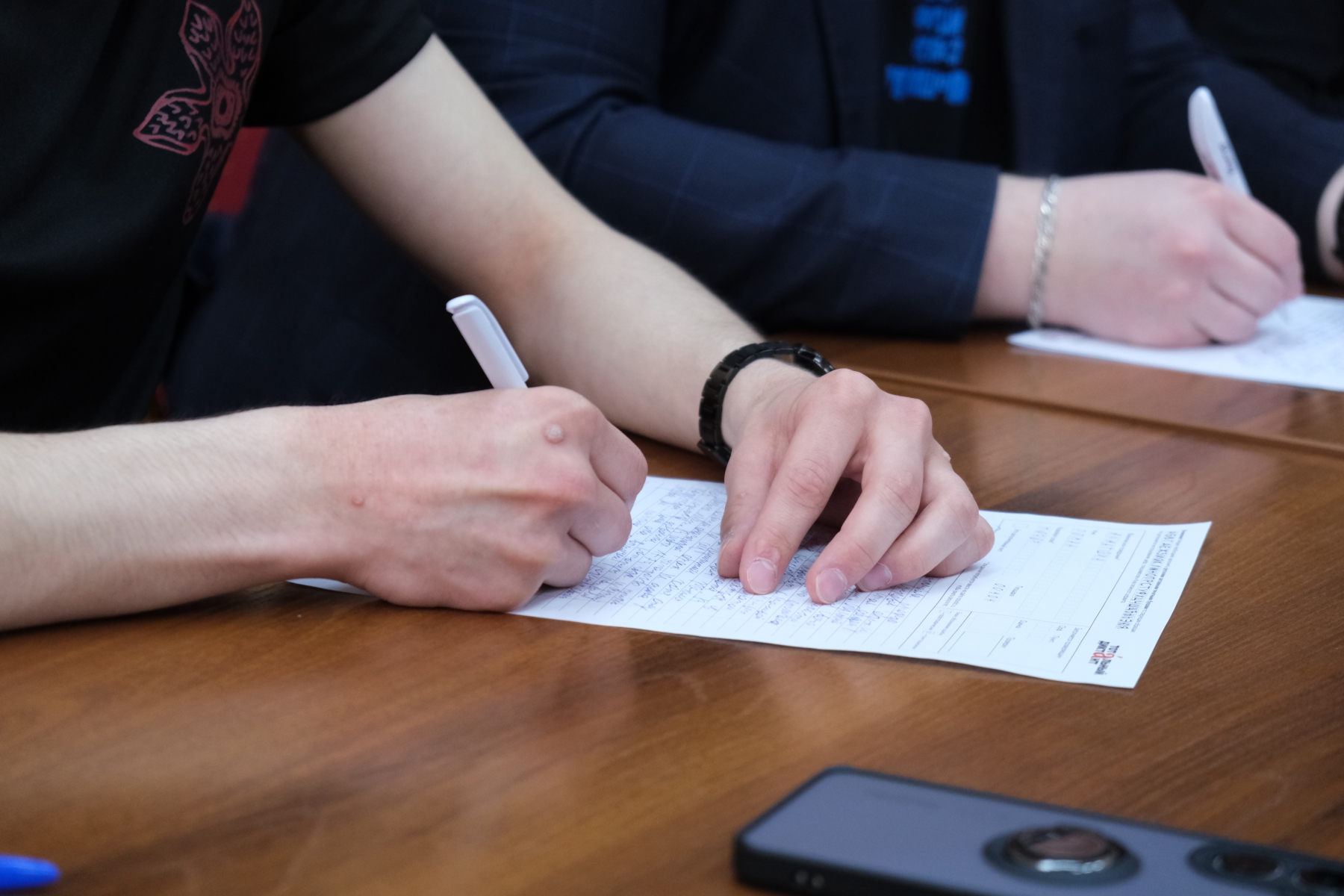 Настроение участников было приподнятым. Они с интересом просмотрели выпуск «Хобостей» – новостей на букву «Ха» о Тотальном диктанте – 2026 и запомнили правило, которое, однако, пригодилось им при написании диктанта.